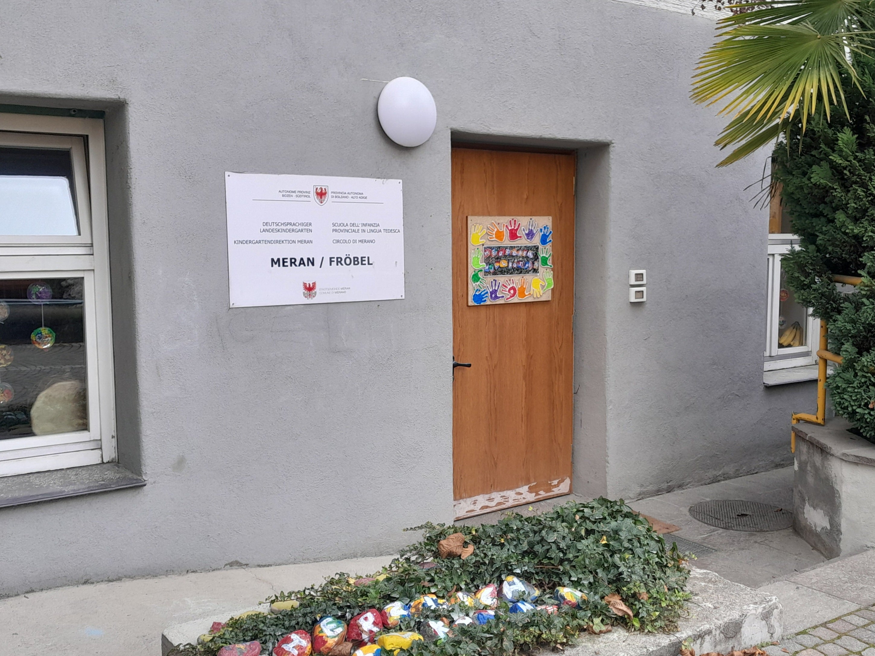Der Kindergarten führt eine Abteilung und befindet sich im historischen Gebäude des ehemaligen Kurmittelhauses im Parterre. Im selben Haus befindet sich auch der italienische Kindergarten Fröbel.