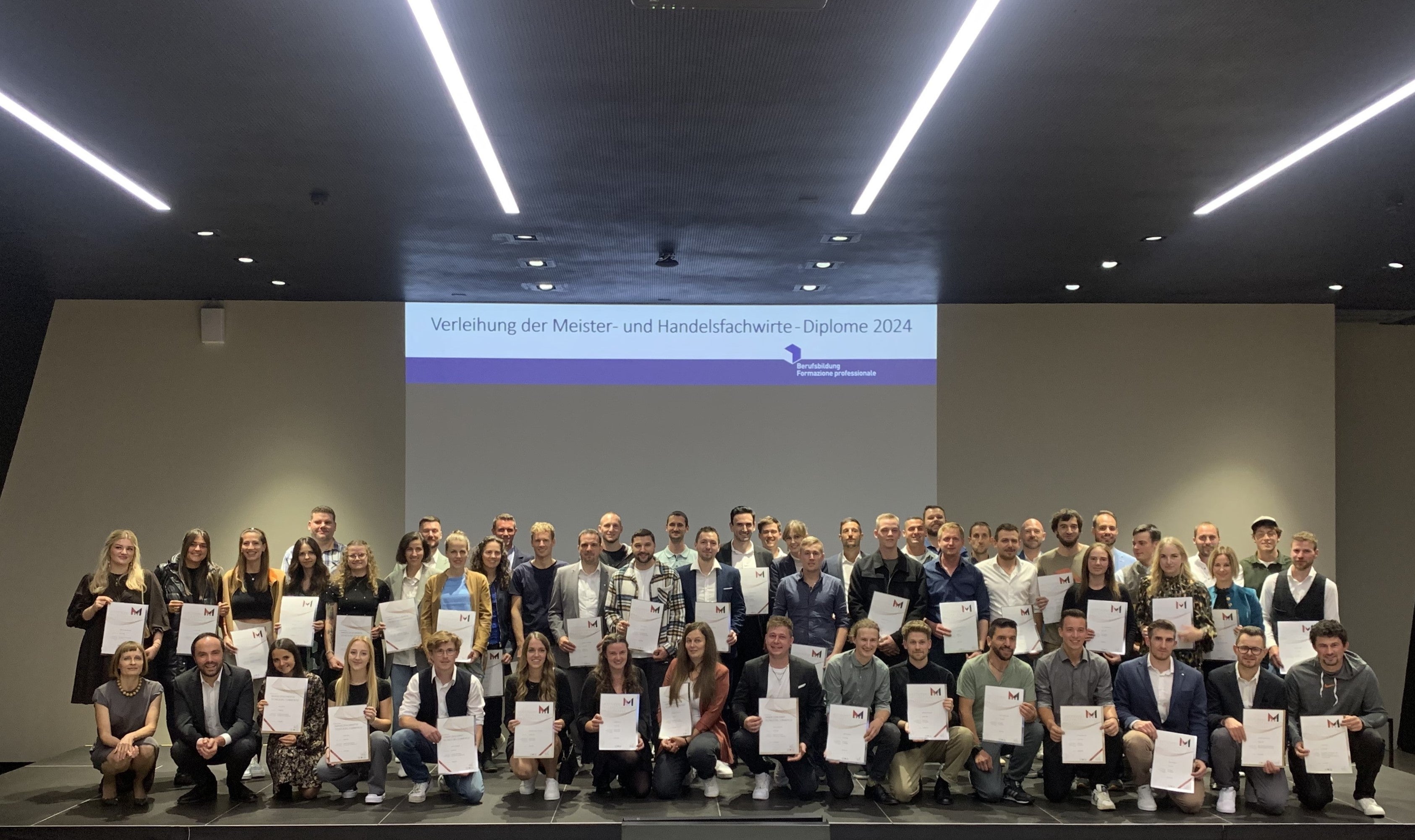59 Fachkräfte in Handwerk, Gastronomie und Handel schließen ihre berufsbegleitende Ausbildung ab - Landesrat Philipp Achammer überreicht Diplome mit Titel "Meister" oder "Handelsfachwirtin"